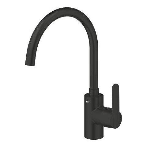 Adding modern style and maximum operating flexibility at the kitchen sink is easy with the easy-to-install, super-functional GROHE Get single-lever kitchen tap in matt black finish